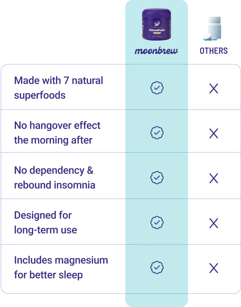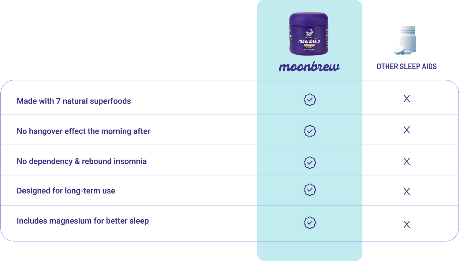 Sleeping pills & melatonin can leave you groggy, tired in the mornings, and aren’t meant to be taken every night. Here’s how MoonBrew is different: