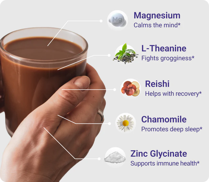 Vanilla Latte and Cappuccino flavors are 99.9% caffeine-free and formulated with active ingredients to help you get deep sleep - no buzz.